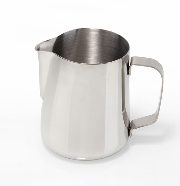 拉花鋼杯口為上口窄、下底寬的尖嘴設(shè)計(jì),較常見的容量規(guī)格有300毫升、600毫升、1000毫升等。使用不同的咖啡杯應(yīng)選擇不同容量的拉花鋼杯,才不易造成牛奶量的浪費(fèi)或不足。