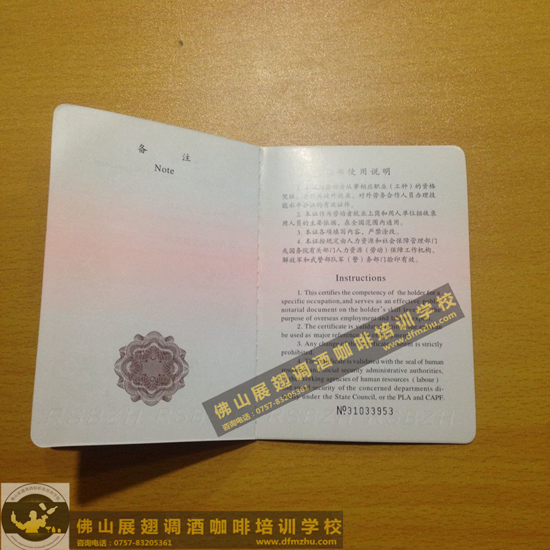 中英文版的職業(yè)資格證書出國通用。(調(diào)酒師、咖啡師、西點(diǎn)師職業(yè)資格證書)佛山展翅調(diào)酒咖啡西點(diǎn)培訓(xùn)學(xué)校畢業(yè)學(xué)生,100%通過率,順利拿到中華人民共和國人力資源和社會(huì)保障部,頒發(fā)的調(diào)酒師、咖啡師、西點(diǎn)師職業(yè)資格證書部分樣版。