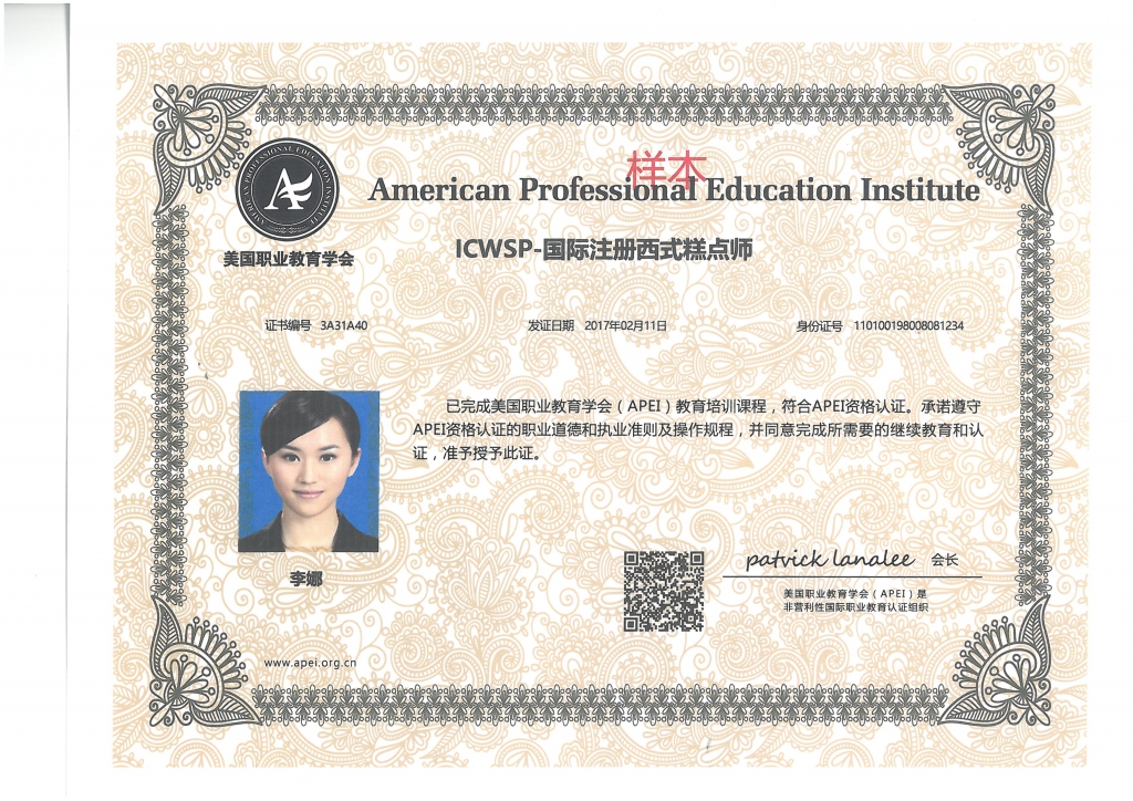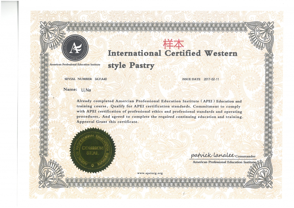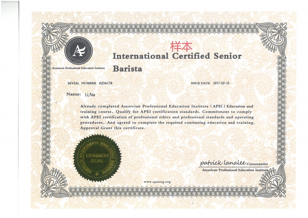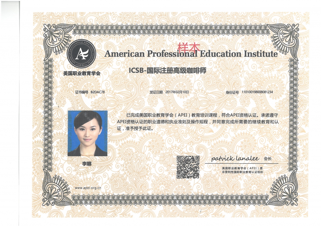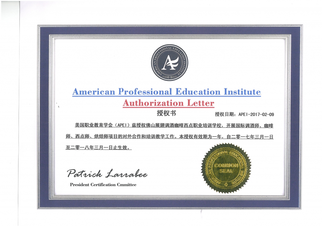 美國(guó)職業(yè)教育學(xué)會(huì)APEI調(diào)酒師、咖啡師、西點(diǎn)師職業(yè)資格證書(shū)