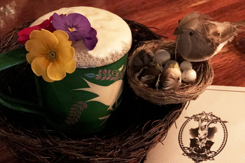 它是如何調(diào)制的?酒單上的配方里寫到了羅勒葉浸漬的必富達金酒、菠蘿蜂蜜和IPA泡沫,不過調(diào)酒師告訴我里面還用到了檸檬汁。Alice酒吧的雞尾酒出名的地方在它的裝飾,這杯也不例外??墒秤没ǎ`感來自 Marian Beke掌舵Nightjar期間的創(chuàng)意 ),還有裝在“鳥巢”里的巧克力蛋(有著可口糖衣的那種)完整呈現(xiàn)了Birds and Bees所要表達的主題。