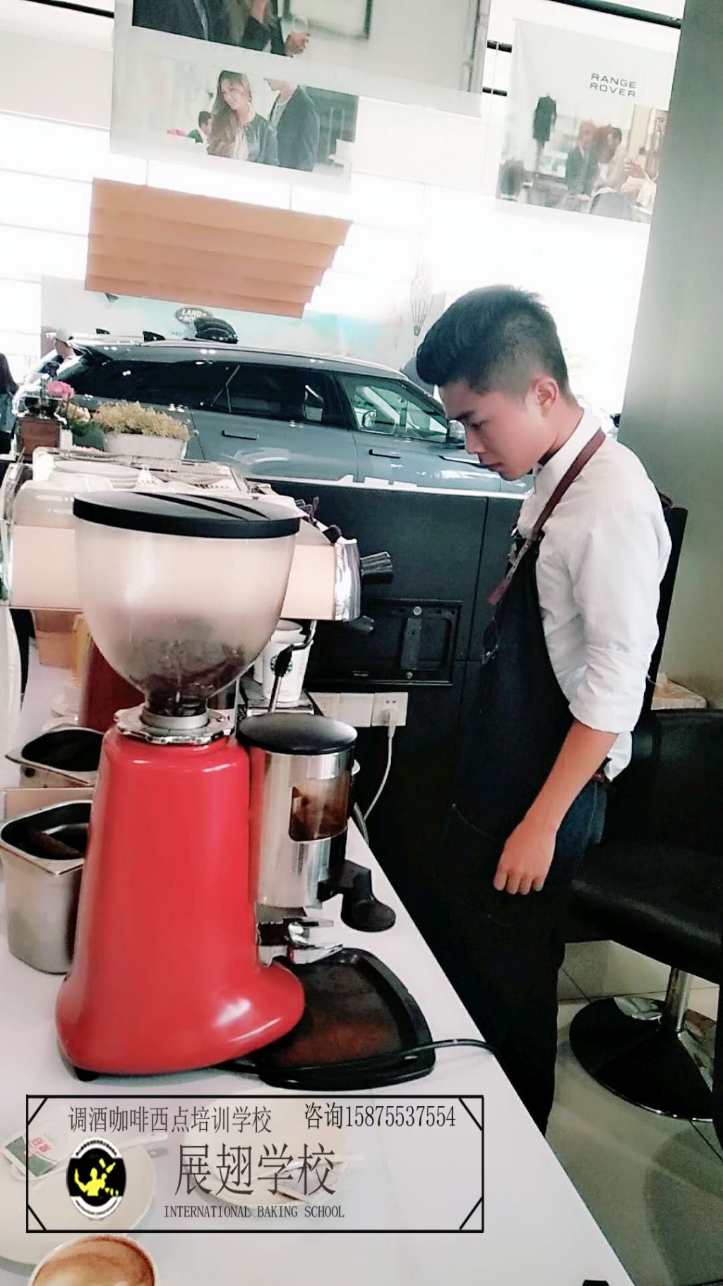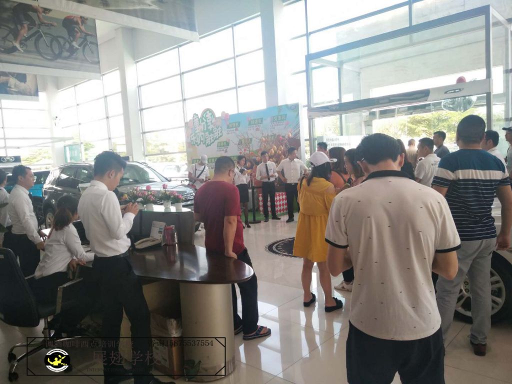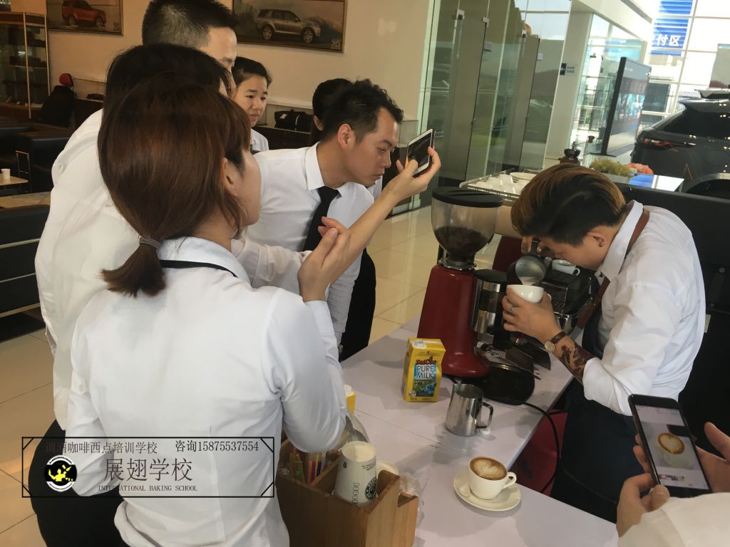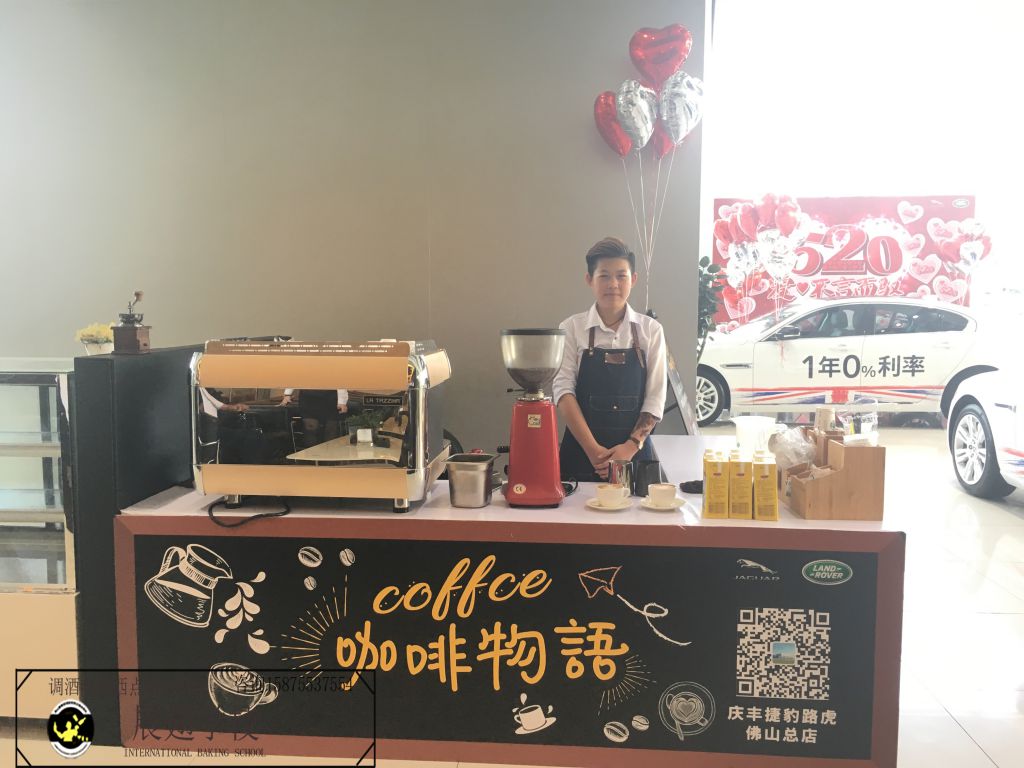 2018年5月19~20日 佛山慶豐捷豹路虎車行再次邀請佛山展翅調(diào)酒咖啡西點(diǎn)培訓(xùn)學(xué)校的學(xué)員在現(xiàn)場擔(dān)任咖啡師,為現(xiàn)場的嘉賓和觀眾朋友們獻(xiàn)上現(xiàn)磨現(xiàn)沖的咖啡,整個(gè)現(xiàn)場都飄滿了濃濃的咖啡香味。對于我們的學(xué)員來說,這又是一次鍛煉自己拉花水平的機(jī)會,也是一次很好的實(shí)戰(zhàn)經(jīng)驗(yàn)。認(rèn)真對待每一次的實(shí)踐活動,讓自己成長得更快。