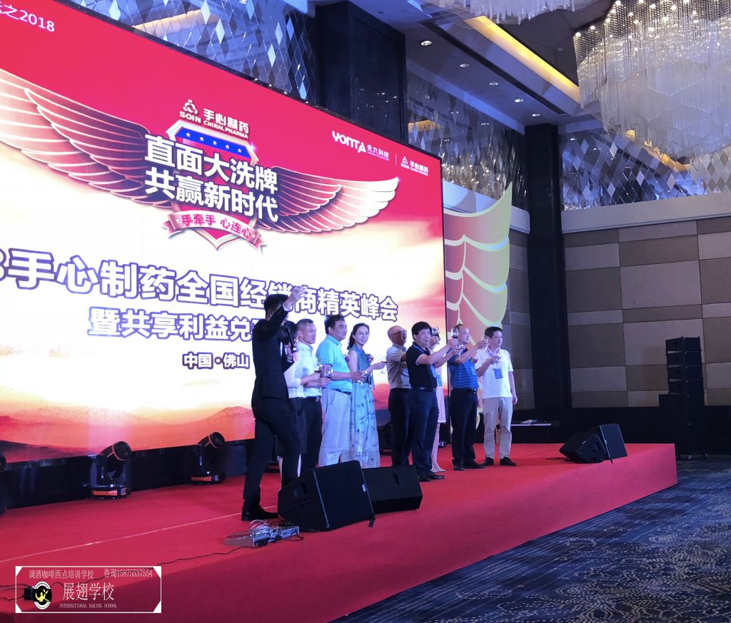 7月20日,2018手心制藥全國(guó)經(jīng)銷(xiāo)商精英峰會(huì)暨共享利益兌現(xiàn)峰會(huì)在廣東佛山隆重舉行,佛山展翅咖啡調(diào)酒西點(diǎn)培訓(xùn)學(xué)?;ㄊ秸{(diào)酒師張韋杰先生受邀為本次峰會(huì)進(jìn)行花式調(diào)酒演出。