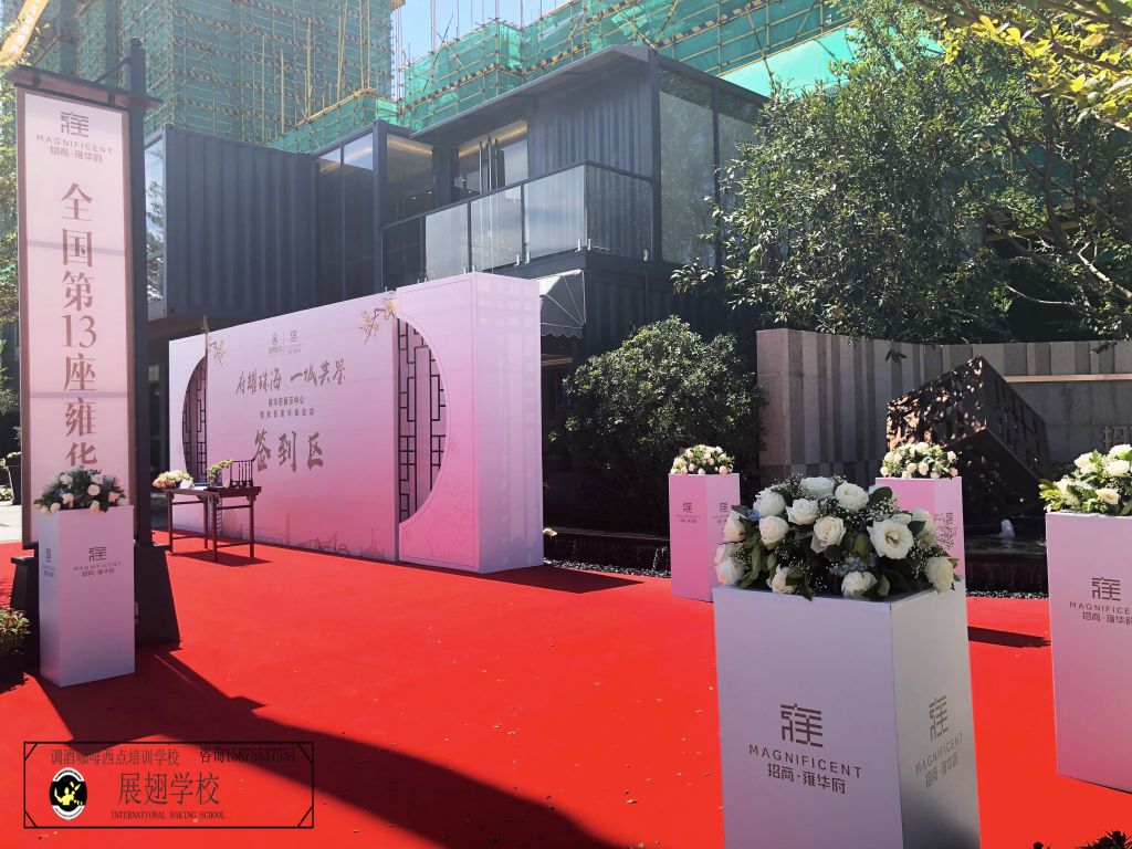 2018年7月28、29日,廣東珠海雍華府展示中心歡歌笑舞,龍獅祝賀,現(xiàn)場(chǎng)氛圍逐漸升溫,雍容華貴的氣息也始終彌散在每一個(gè)角落。佛山展翅咖啡調(diào)酒西點(diǎn)培訓(xùn)學(xué)校的咖啡師學(xué)員受邀為現(xiàn)場(chǎng)提供精品咖啡,紳士頭型的咖啡拉花圖案讓現(xiàn)場(chǎng)嘉賓頗感驚奇,嫻熟有道而又細(xì)致入微的咖啡拉花技巧更是讓嘉賓嘆為觀止,用微笑默默點(diǎn)贊!