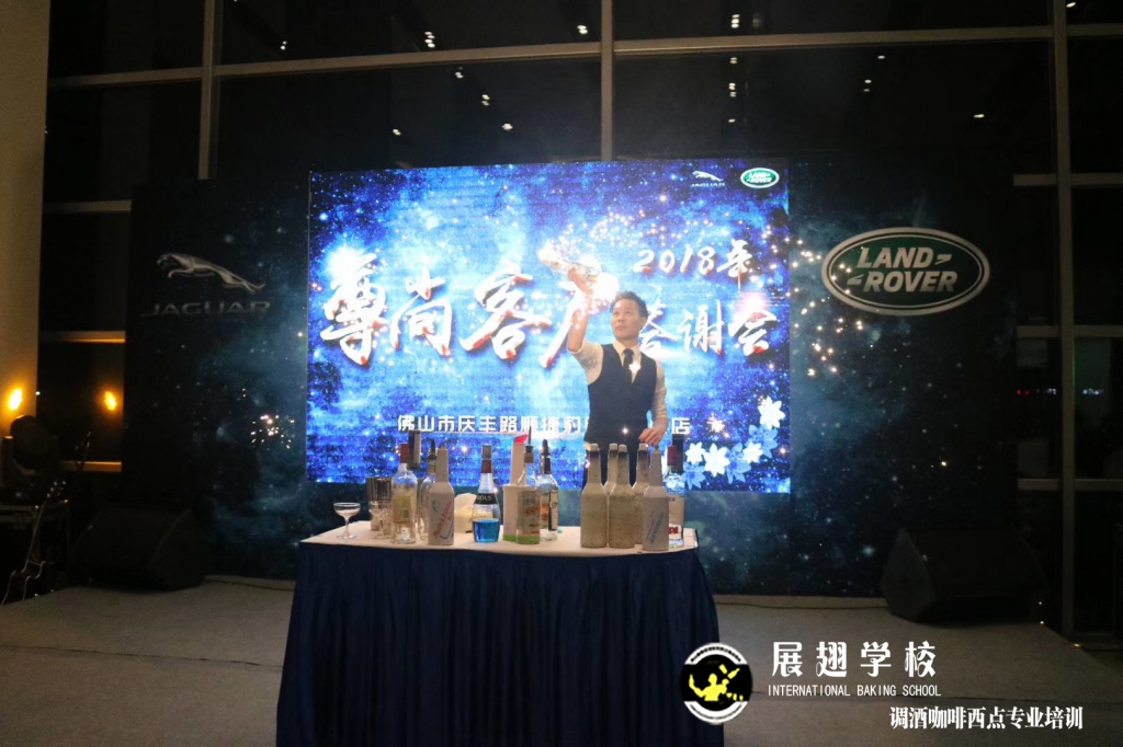 2018年12月30日,順徳慶豐路順捷豹路虎4S店客戶答謝會邀請了佛山展翅調(diào)酒咖啡西點培訓學校的學員為現(xiàn)場的嘉賓提供了專業(yè)花式調(diào)酒節(jié)目及雞尾酒,在每場活動中調(diào)制雞尾酒及實踐給學員帶來積累及更多的學習