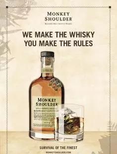 同樣采用小批量釀造,由三款來(lái)自斯佩塞地區(qū)的優(yōu)質(zhì)單一純麥威士忌調(diào)和而成的Monkey Shoulder,其名字靈感來(lái)源于因早期蘇格蘭工業(yè)化發(fā)展不夠發(fā)達(dá),酒廠(chǎng)工人在釀造過(guò)程中需要徒手翻麥,長(zhǎng)期的單一重復(fù)勞動(dòng)很容易造成肩部肌肉勞損的這一特殊現(xiàn)象。 在向傳統(tǒng)蘇格蘭威士忌釀造工藝傳達(dá)敬意和傳承的同時(shí),Monkey Shoulder也注重雞尾酒文化和街頭文化,不斷鼓勵(lì)創(chuàng)新,使其頗受業(yè)內(nèi)的喜愛(ài)與推崇。試飲推車(chē)、花果山、凍檸杯、konga藥壺、Ispoon等新理念也讓威士忌變的更為有趣。