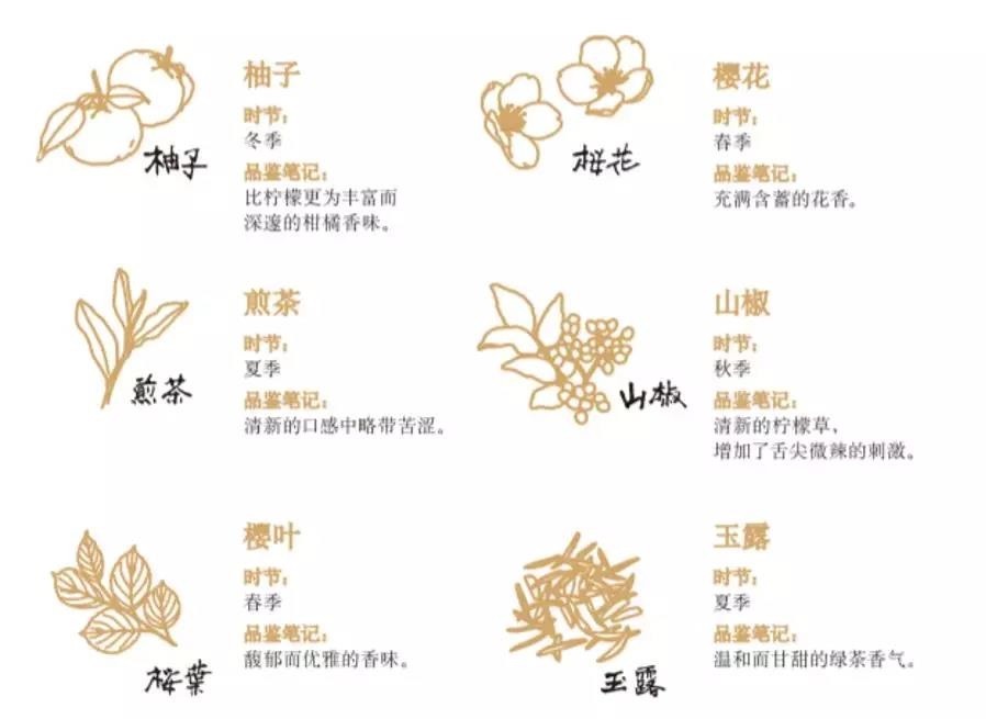 六種日本當(dāng)?shù)刂参镔x予金酒獨(dú)特的東方韻味
