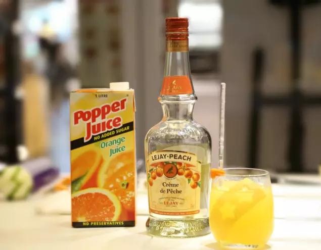 “ 調(diào)制方法:在杯中放入適量冰塊,倒入45ml樂加桃子利口酒及適量橙汁,用柚子皮裝飾即可。