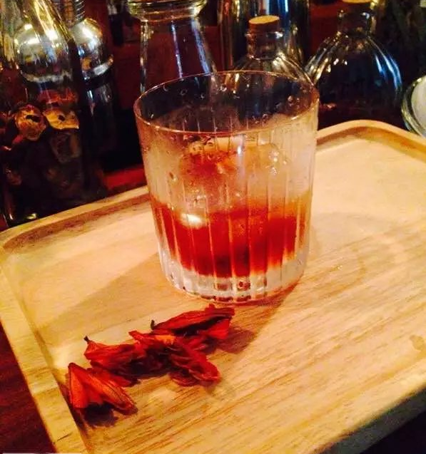 將所有材料放入一個(gè)小木桶中存放兩周后裝瓶。上桌時(shí)倒入一個(gè)加有冰塊的洛克杯中,攪拌,以一片橙子皮裝飾。