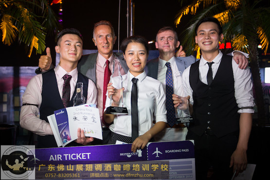 宋艷琳(中間),2016莫林杯調(diào)酒大賽中國區(qū)總決賽冠軍。Song Yanlin (centre), 2016 Monin Cup China winner.